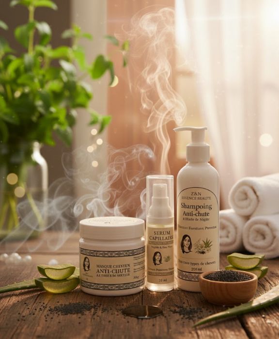 Renforcez vos cheveux à la racine et réduisez efficacement la chute grâce à notre kit complet Anti-Chute à l’Huile de Nigelle, spécialement formulé pour stimuler la croissance, fortifier la fibre capillaire et revitaliser les cheveux fragilisés.