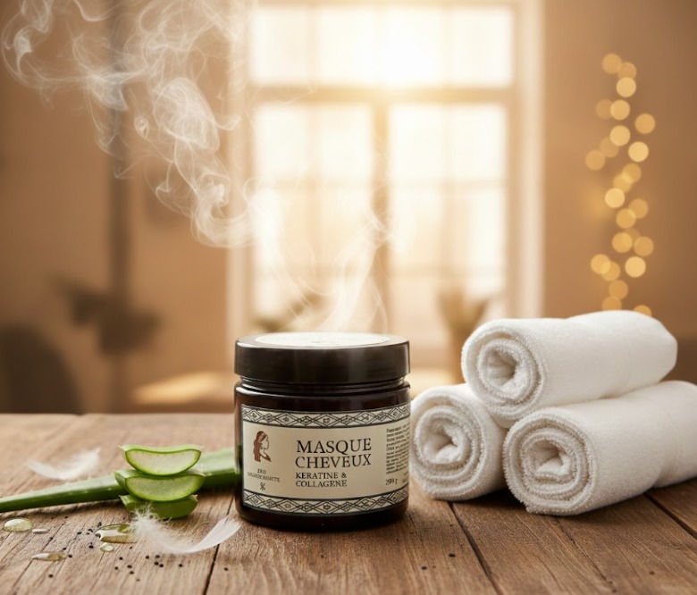 Offrez à vos cheveux un soin profond et réparateur avec le Masque Cheveux Kératine & Collagène, spécialement conçu pour renforcer, lisser et revitaliser les cheveux abîmés ou sensibilisés.